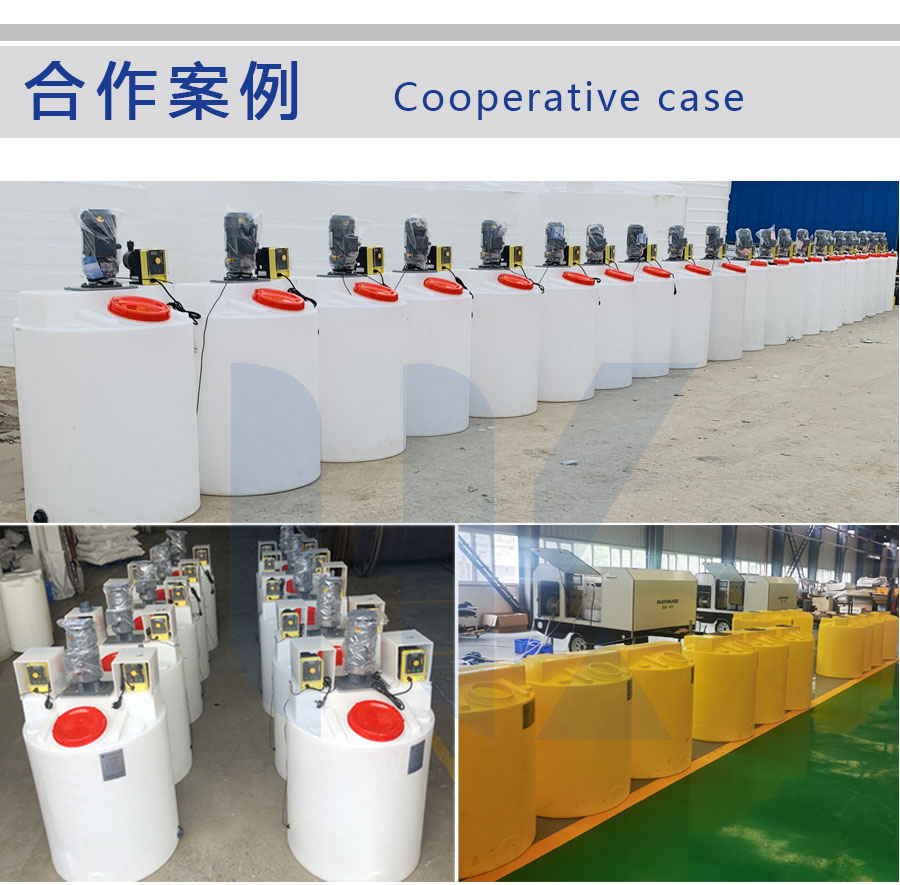 pe加藥桶上部(bù)預設了計量泵及攪拌(bàn)機的(de)安裝位置,攪拌機、加藥桶、計量泵三合一,使用非(fēi)常(cháng)方便。(加藥桶預設的計量泵及攪拌機安(ān)裝位置,並不完全通用於所有品(pǐn)牌、型號(hào)的計量泵(bèng)及攪拌機,具體安裝時需要由客(kè)戶根據實際情況作出相應調整。)