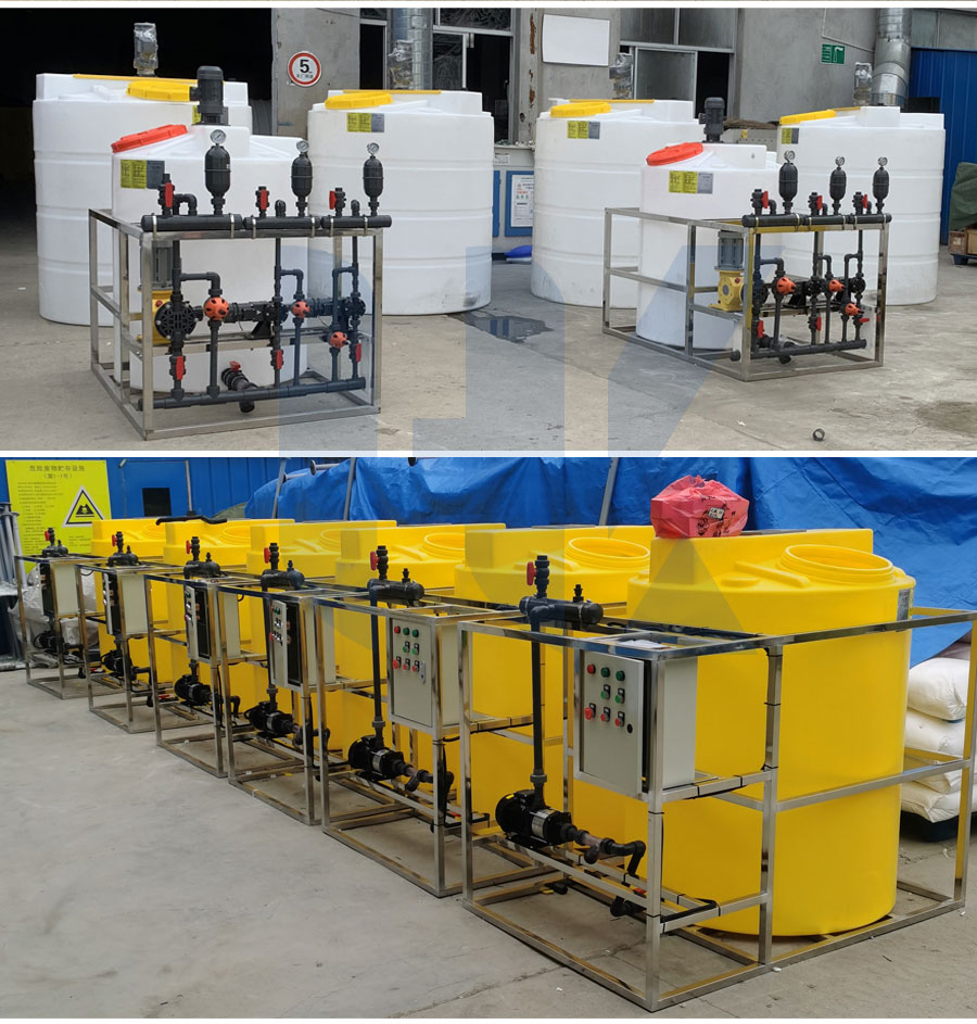 主要配件:加藥(yào)桶、攪拌(bàn)器、計量泵(bèng)、控製係統、304不鏽鋼/碳鋼平台等(děng);