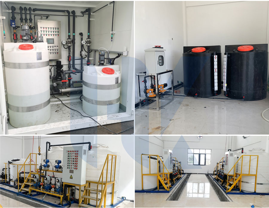 3、水處理加藥裝置。在水(shuǐ)處理過程中(zhōng)向(xiàng)自來(lái)水、廢水、汙水中加藥。主要用於有關給排水處理、環保(bǎo)等(děng)工藝流程。如自來水廠、賓館、飯店、遊泳池(chí)、汙水(shuǐ)處理廠等。